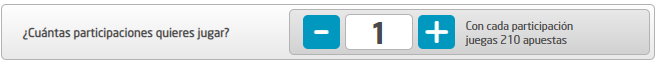 Jugar en la Peña Primium de La Primitiva es tan sencillo como seleccionar cuántas participaciones de la Peña quieres jugar, utilizando los botones [-] y [+].